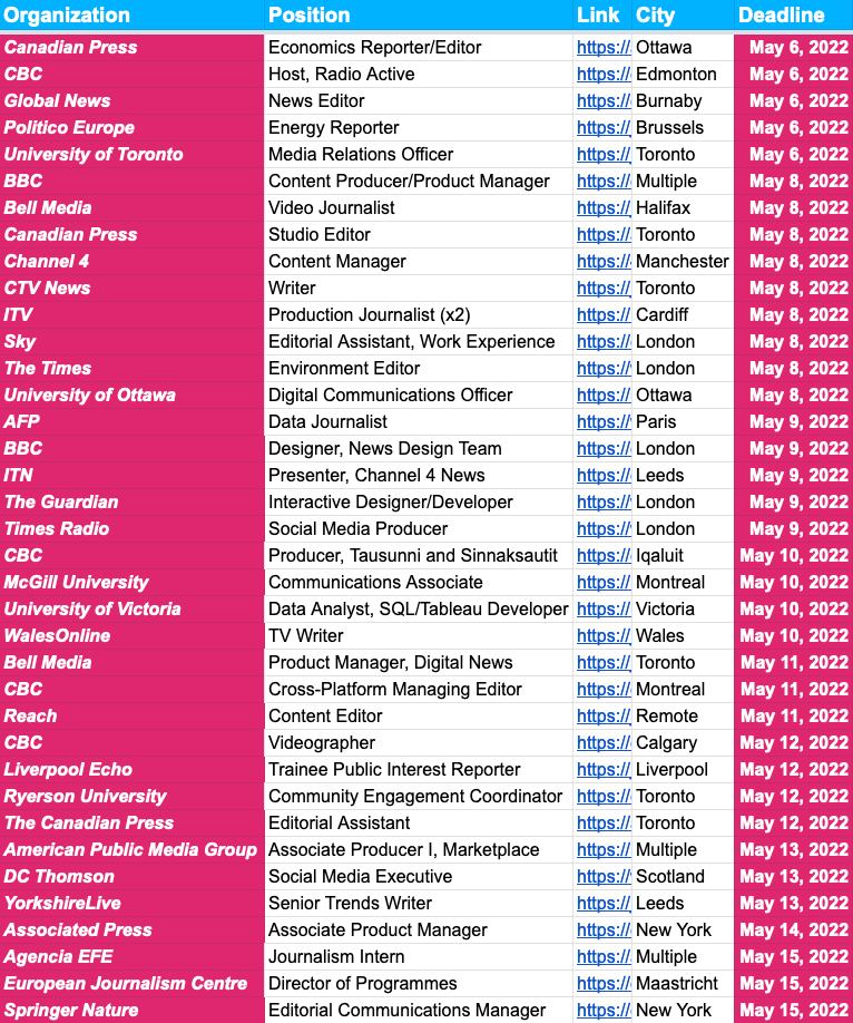 Speaking of which, today marks the deadline for our featured job: a remote Associate Editor position at Project Syndicate. And be sure to check out Monday’s new jobs update, where we added another boatload of new openings.