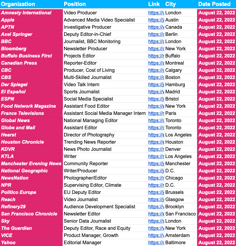 Until then, let’s get through some stuff. Last Monday’s newsletter included thoughts on the recent layoffs at Gannett, as well as some useful resources. In case you missed it, we’re offering all of our services — job board, candidate board, résumé/CV and cover letter help — free for 30 days for any former Gannett employees affected by the layoffs, or current Gannett employees that see the writing on the wall.