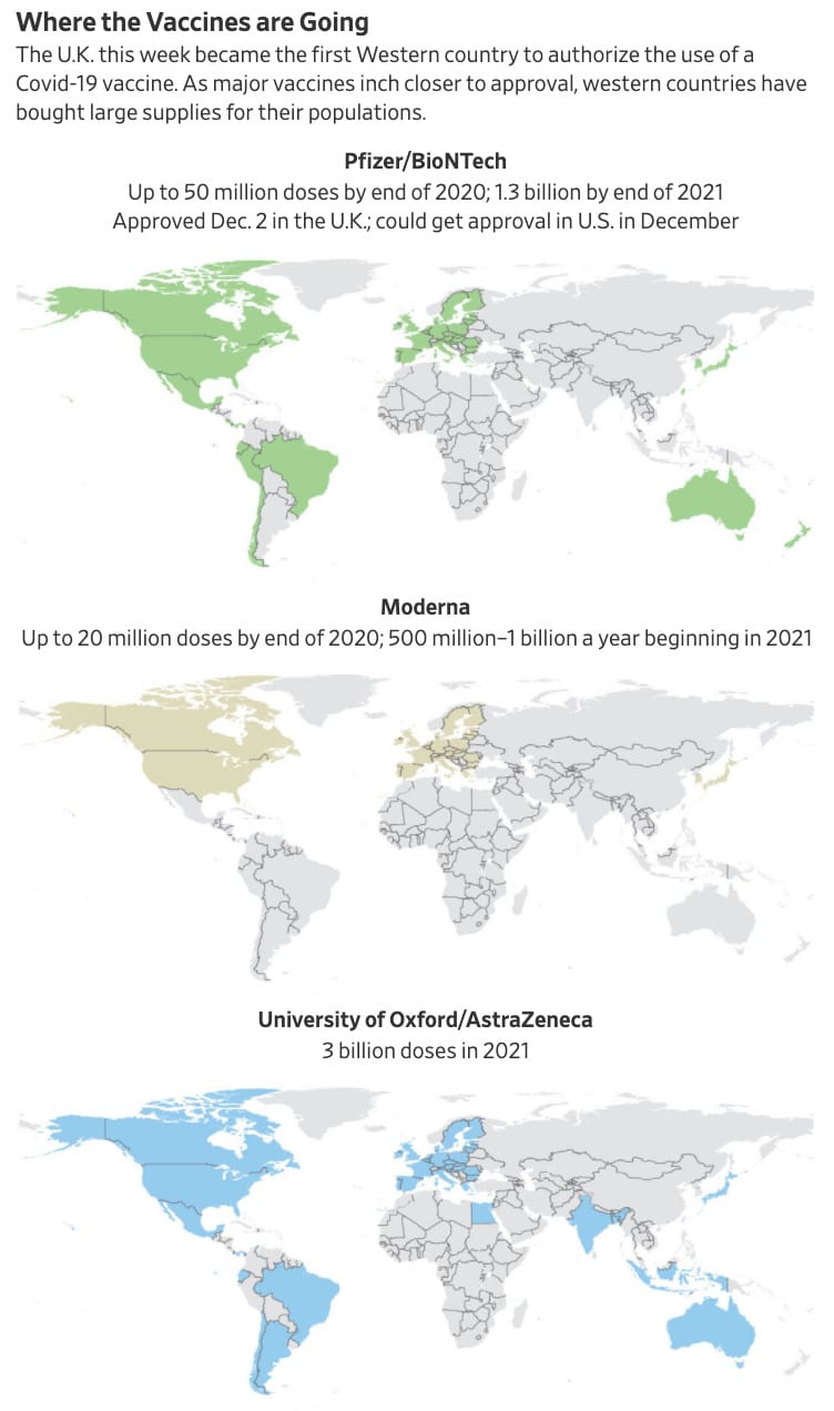 Below are some maps my colleagues and I at WSJ put together looking at where the three major vaccines developed in the West are headed…