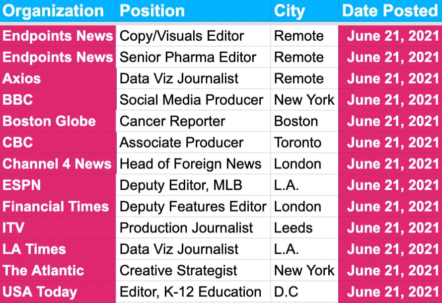 If you’re a paying member, your jobs sheet link will remain the same. Interested in a free week’s trial? Reply to this email and we’ll hook you up!