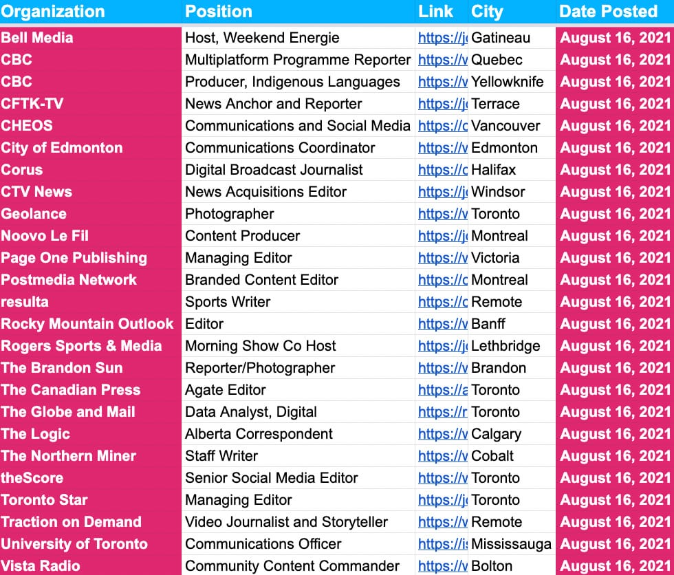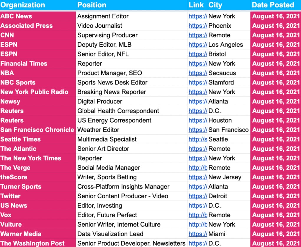 ✍️✍️ Job Board Update ✍️✍️ — August 16