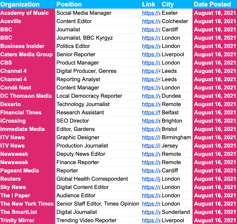 I also sent out a subscriber feedback survey on Friday and the response has been great. Thank you thank you to those who have responded. If you haven’t, I want you to tell me how I can make Inside The Newsroom the best journalism jobs newsletter around, and ultimately the best value for money possible. The survey is below if you have a couple minutes spares. 🙏