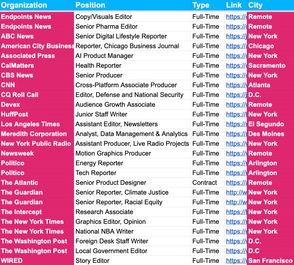 If you’re a paying member, your jobs sheet link will remain the same. Interested in a free week’s trial? Reply to this email and we’ll hook you up!