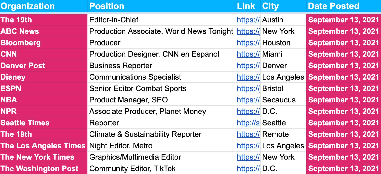 We added another 304 jobs over the weekend, and now have more than 300 internships across the U.S., UK and Canada. That means we have close to 3,000 total listings — remember when we had only 1,000? That makes us the most comprehensive journalism job board around. Details on how to subscribe and previews of new jobs are below.