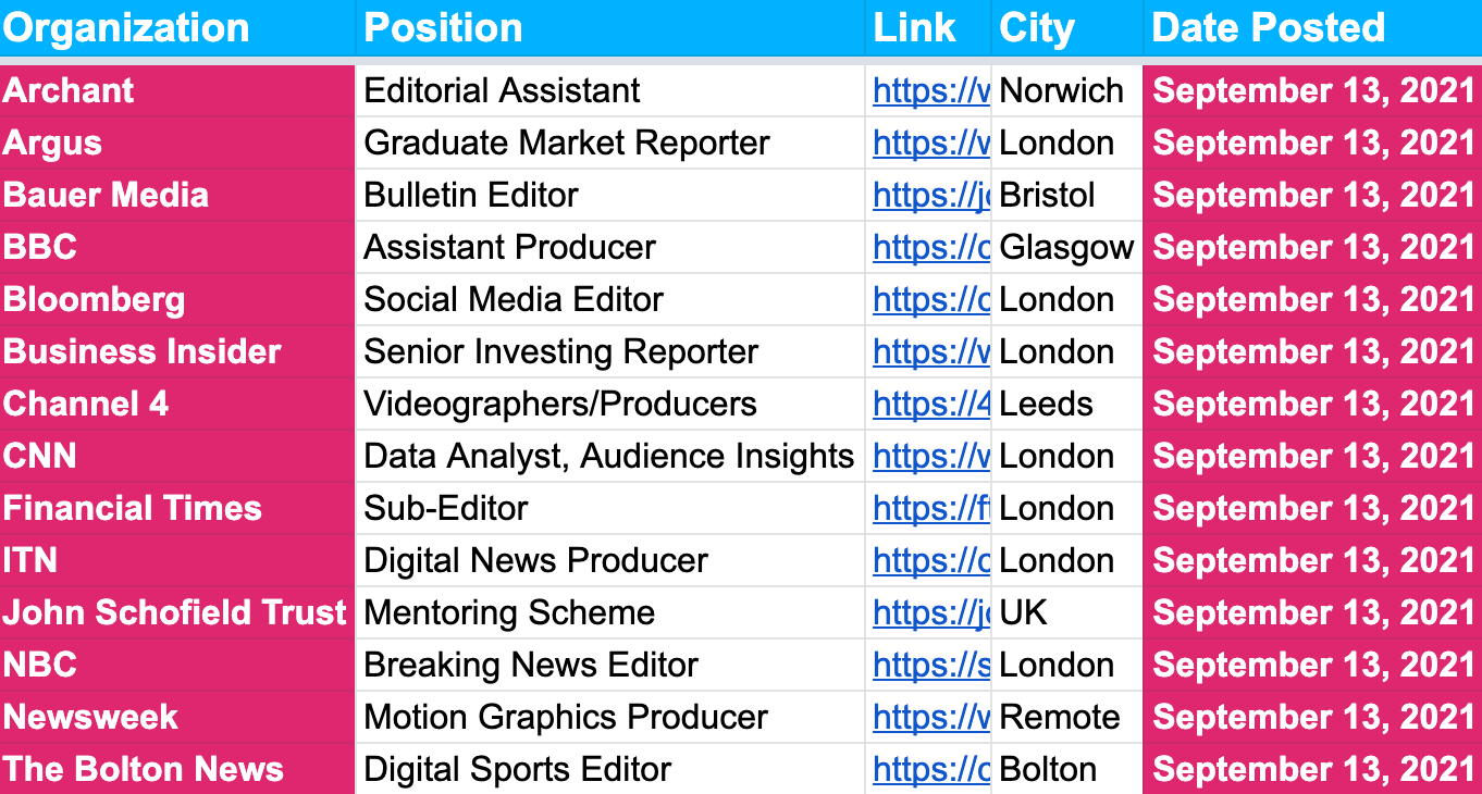 If you’re a paying member, your jobs sheet link will remain the same. Interested in a free week’s trial? Reply to this email and we’ll hook you up!