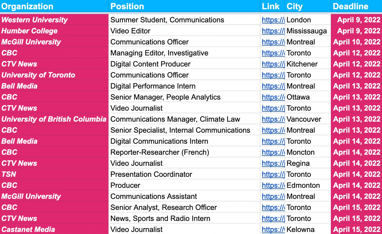 ✍️✍️ Job Deadlines ✍️✍️ — April 8