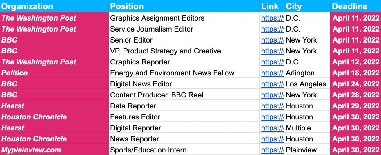 At the time, I'd just accepted a new job at the Wall Street Journal and had some extra time on my hands. So I started throwing a few hundred jobs at newsrooms that were still hiring on a spreadsheet for everyone. It was my way of trying to plug the holes that were puncturing the journalism industry.