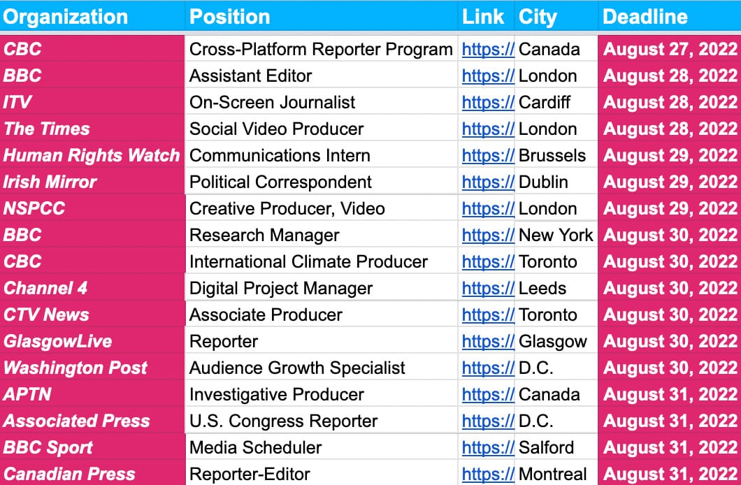 ✍️✍️ Job Deadlines ✍️✍️ — August 26