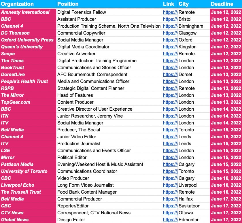 First up is a reminder to check in on Monday’s jobs update, which included another bumper update with new openings at the likes of Amazon, Apple, Art Canada Institute, BBC, CNN, Disney, Dow Jones, Financial Times, ICF Next, La Liga, New York Times, The Economist and The View.