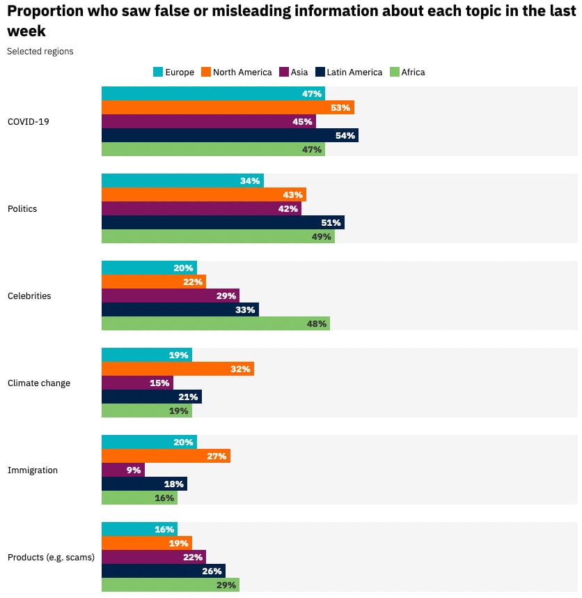 This year’s DNR surveyed more than 93,000 online news consumers across 46 countries. The report covered a plethora of topics and below are three that stood out to me. You can access the report’s data here and all the highlights of the report here.