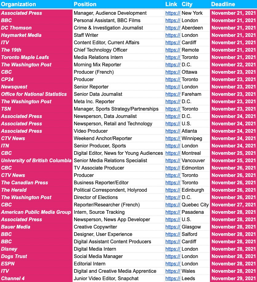 ✍️✍️ Job Deadlines ✍️✍️ — November 19