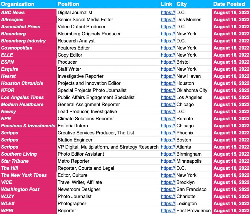 Subscribe below for full access to all the deadlines, as well as thousands of active openings in hundreds of newsrooms across the U.S., Canada, UK and Europe. Or try-before-you-buy with a free 7-day trial.