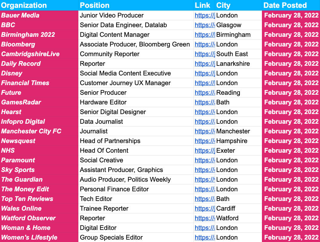 It feels moot to mention that our February Free Trial promotion ends today, so be sure to grab yourself a free-week’s trial of Inside The Newsroom and its job board. We have more than 2,500 jobs across the U.S., UK, Canada and Europe.