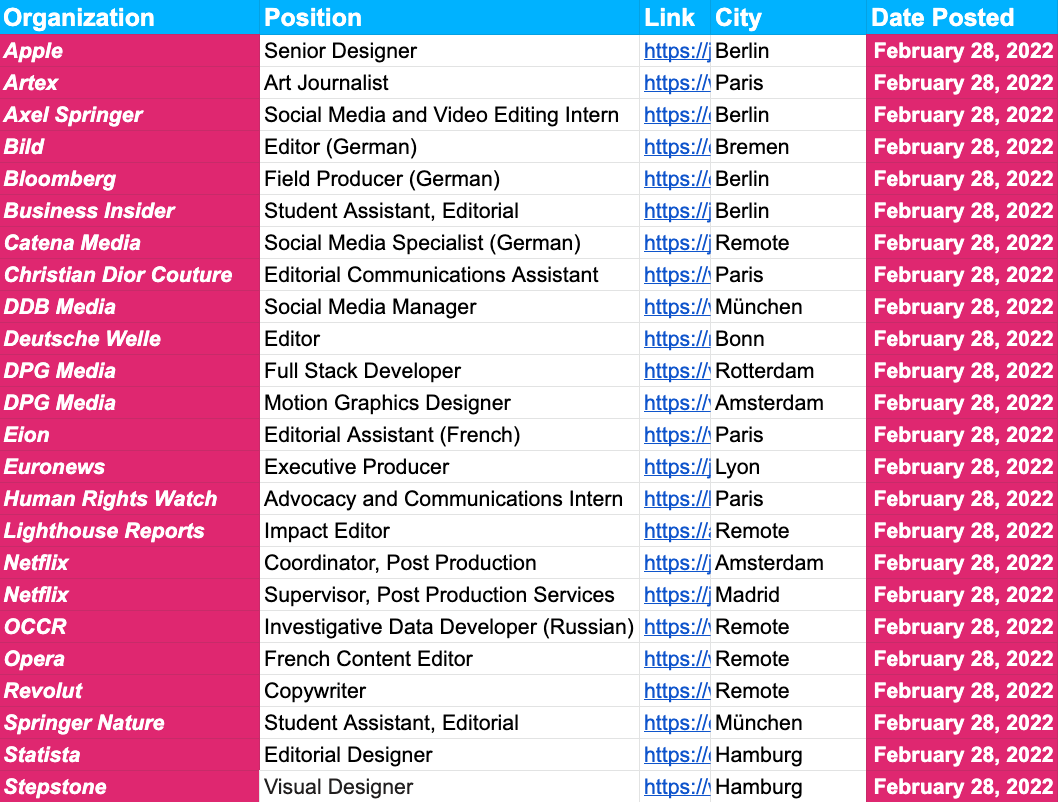 🚨 If you’re a paying subscriber, your jobs sheet link remains the same each week 🚨