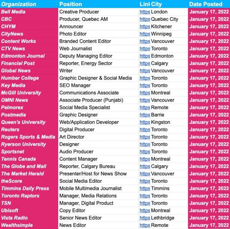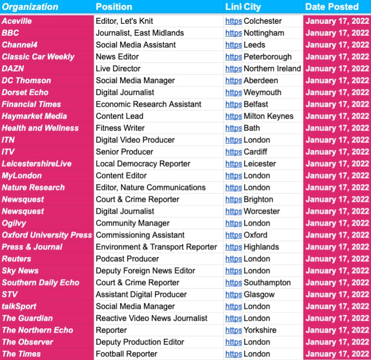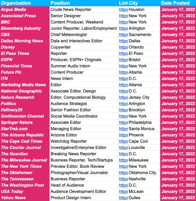 And important: next week’s job board will be updated on Tuesday.