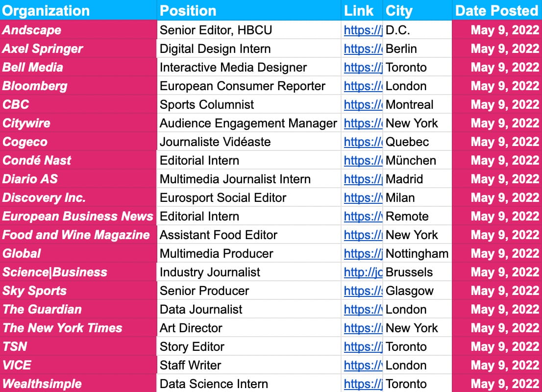 Be sure to also check out our hundreds of upcoming deadlines from Friday, including at the likes of the AFP, American Public Media Group, BBC, Bell Media Canadian Press, European Journalism Centre, The Guardian and Sky.