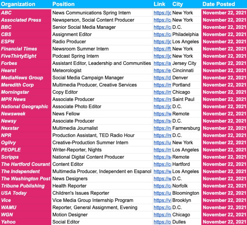 More than 2,500 jobs at more than 1,000 newsrooms across the U.S., UK and Canada. Below are screenshot previews of the jobs you’ll have access to when you subscribe…