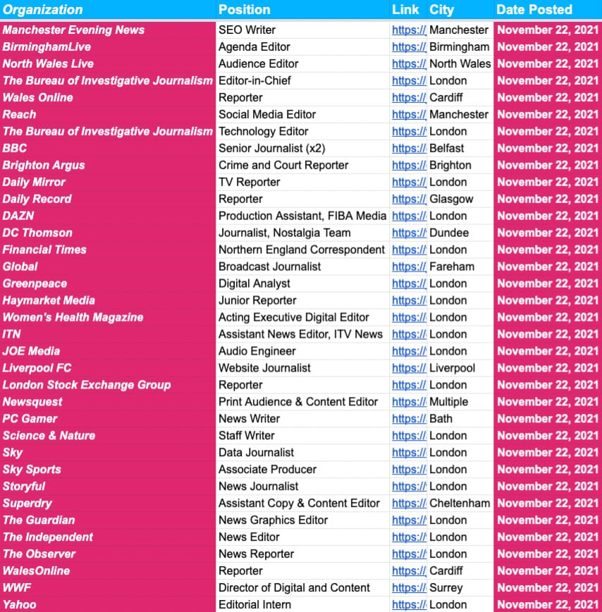 Hello folks! Happy Monday, hope everyone is doing great! As usual, we have another huge update to the job board for you, and have jobs posted from the likes of The Guardian, New York Times, Reach, The Washington Post, and The Bureau of Investigative Journalism...