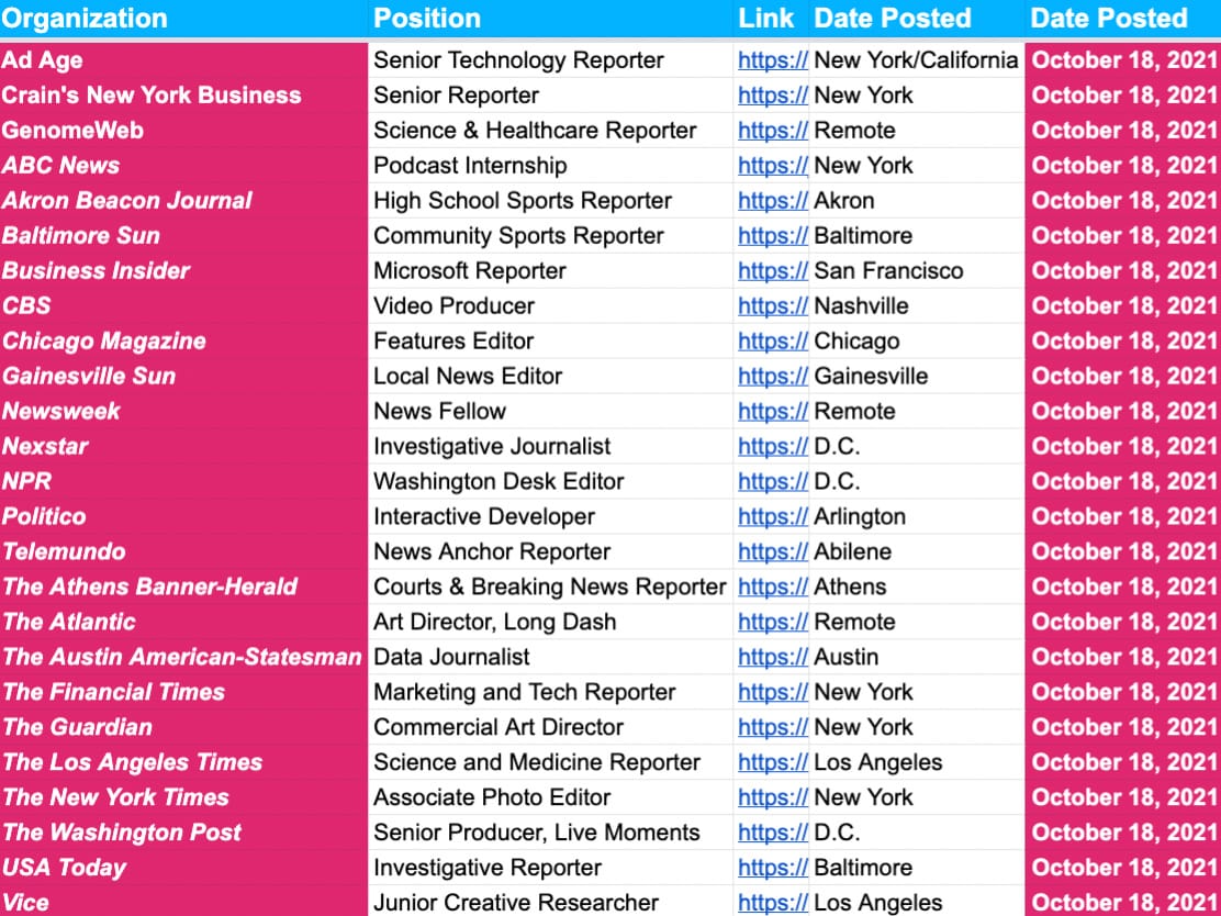 More than 2,500 jobs at more than 1,000 newsrooms across the U.S., UK and Canada. Below are screenshot previews of the jobs you’ll have access to when you subscribe…
