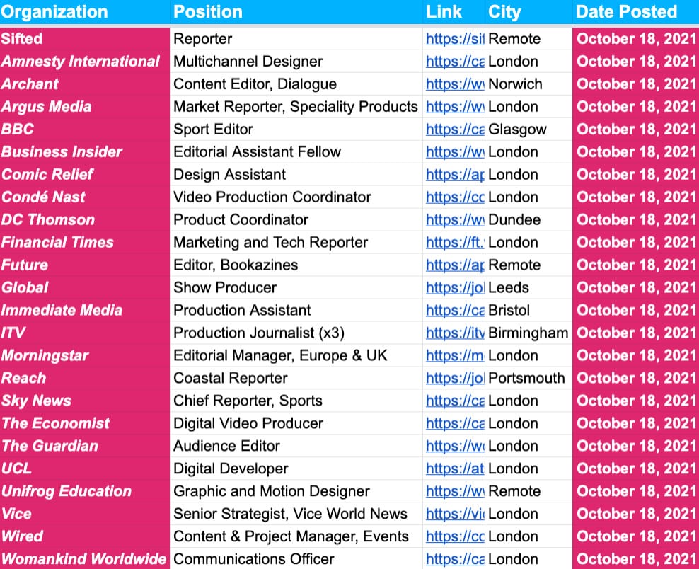 Until then, be sure to check out a selection of the new jobs listed to the board (below), as well as Outside The Newsroom at the bottom, where Sophie dissects the latest news from around the world for us.