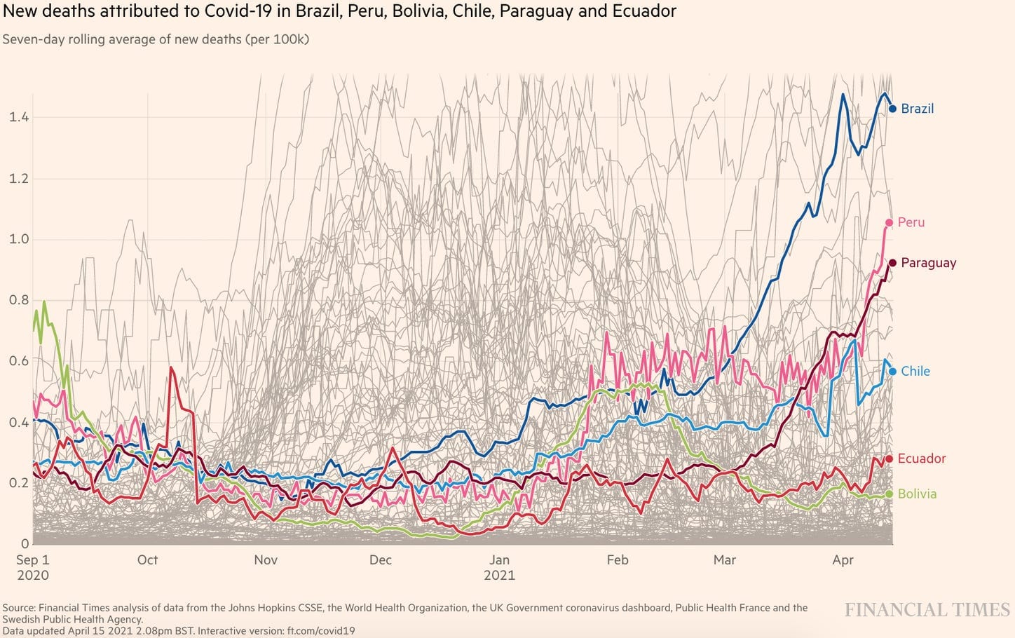 Election news next, where voters in Peru sent the country’s presidential election to a runoff, scheduled for June, in the fifth presidential election in five years. Far-left candidate and teachers’ union leader Pedro Castillo won 19 percent of the vote, and will face Keiko Fujimori, the daughter of imprisoned former right-wing president Alberto Fujimori, who finished with 13 percent and has herself spent time in prison.
