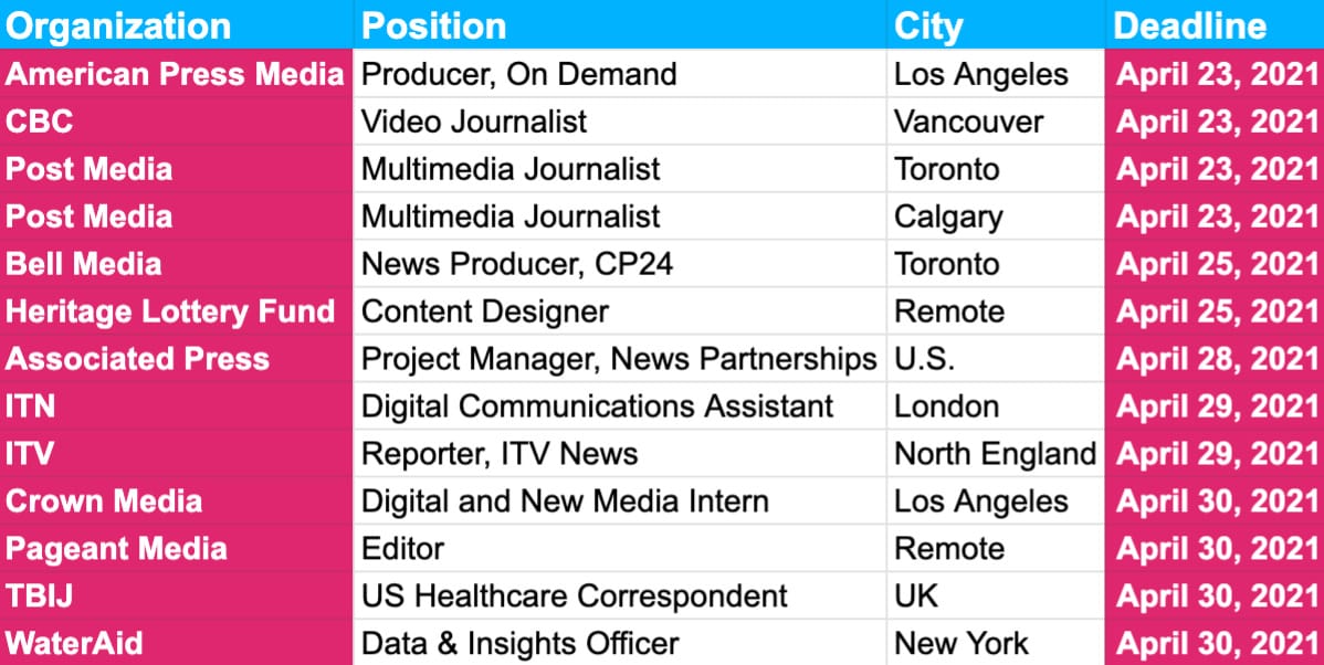 More than 60 deadlines coming up until the end of the month, and weâve included some below. If youâre a paying subscriber, be sure to send us your CV/resume and cover letters and weâll have a look and provide some feedback.