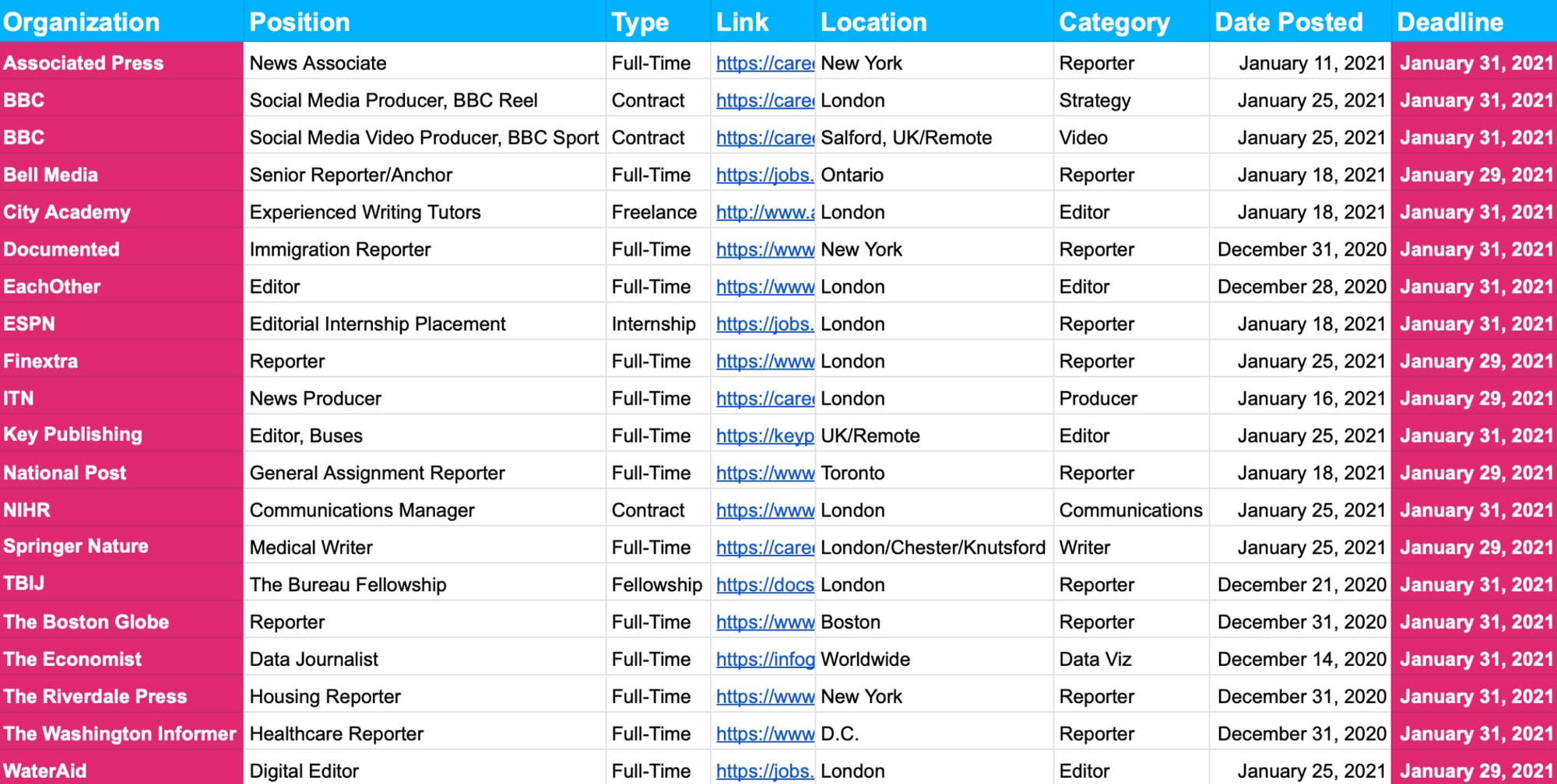 Due to a limit on the number of people that can be added to a Google Spreadsheet, I’ve made two versions listing exactly the same jobs, so no need to have access to both. If you’re a paying member, you’ll have access to one of the two below links/buttons.