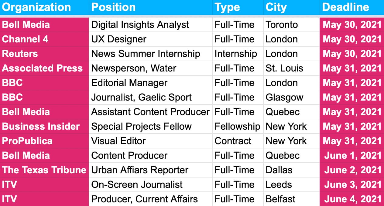 We have deadlines approaching for roles in multiple cities, with a few listed below. Subscribe for full access…