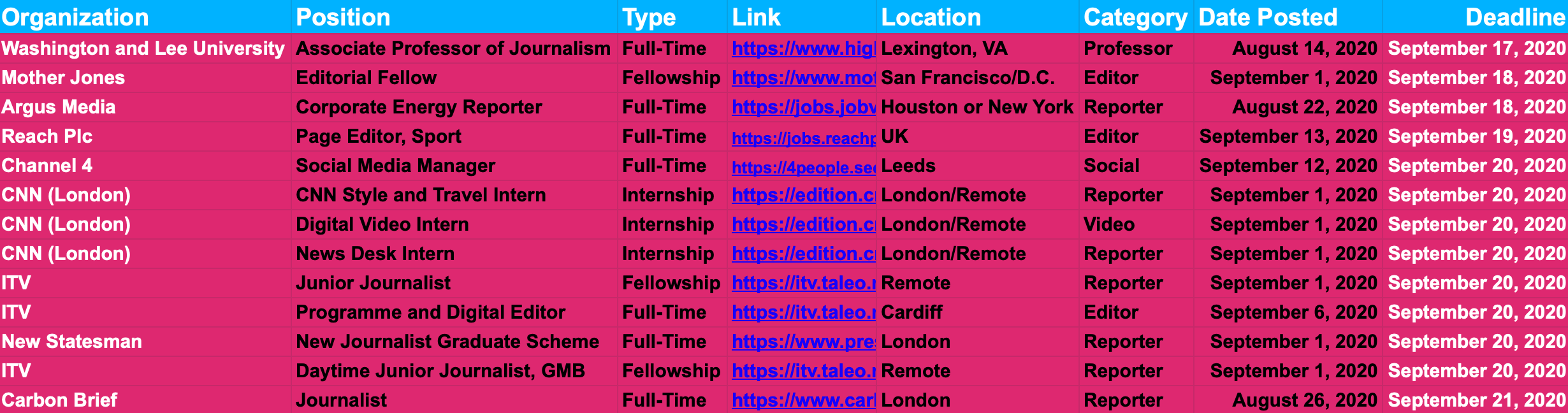 Right now there are more than 850 journalism jobs and internships on the job board, with deadlines this week for CNN, ITV, Mother Jones and the New Statesman. Sign up for the job board here.