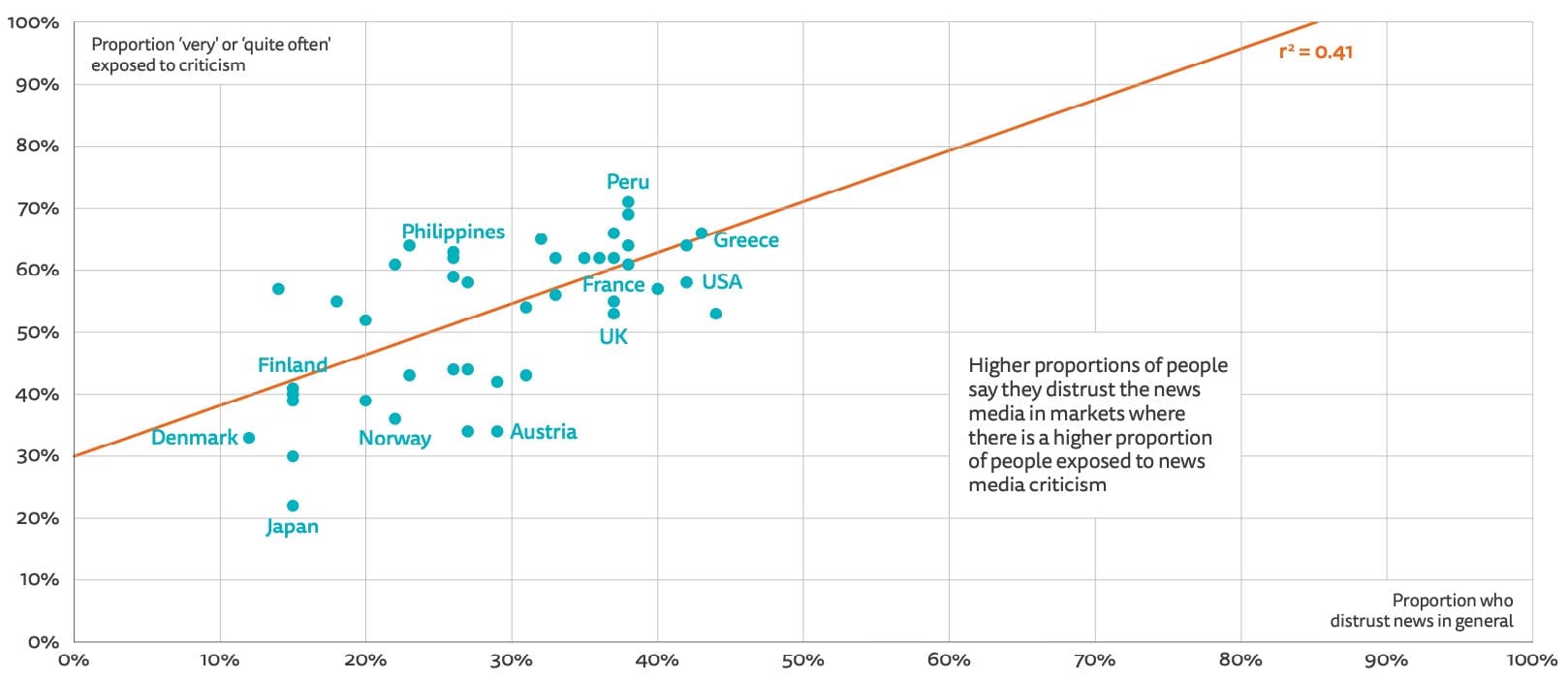 The most fascinating analysis I found from the report, yet perhaps the most unsurprising, was on the correlation between media criticism and its impact on trust. It makes sense: the more you hear, see or read negative views about something, the more likely you are to buy into those opinions.