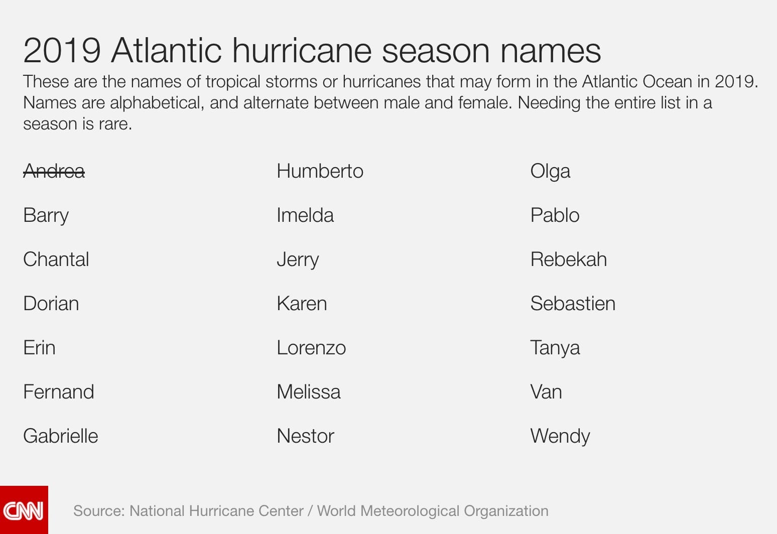 A look at the names for the 2019 Atlantic hurricane season. Here’s to hoping we don’t have to use all of them…