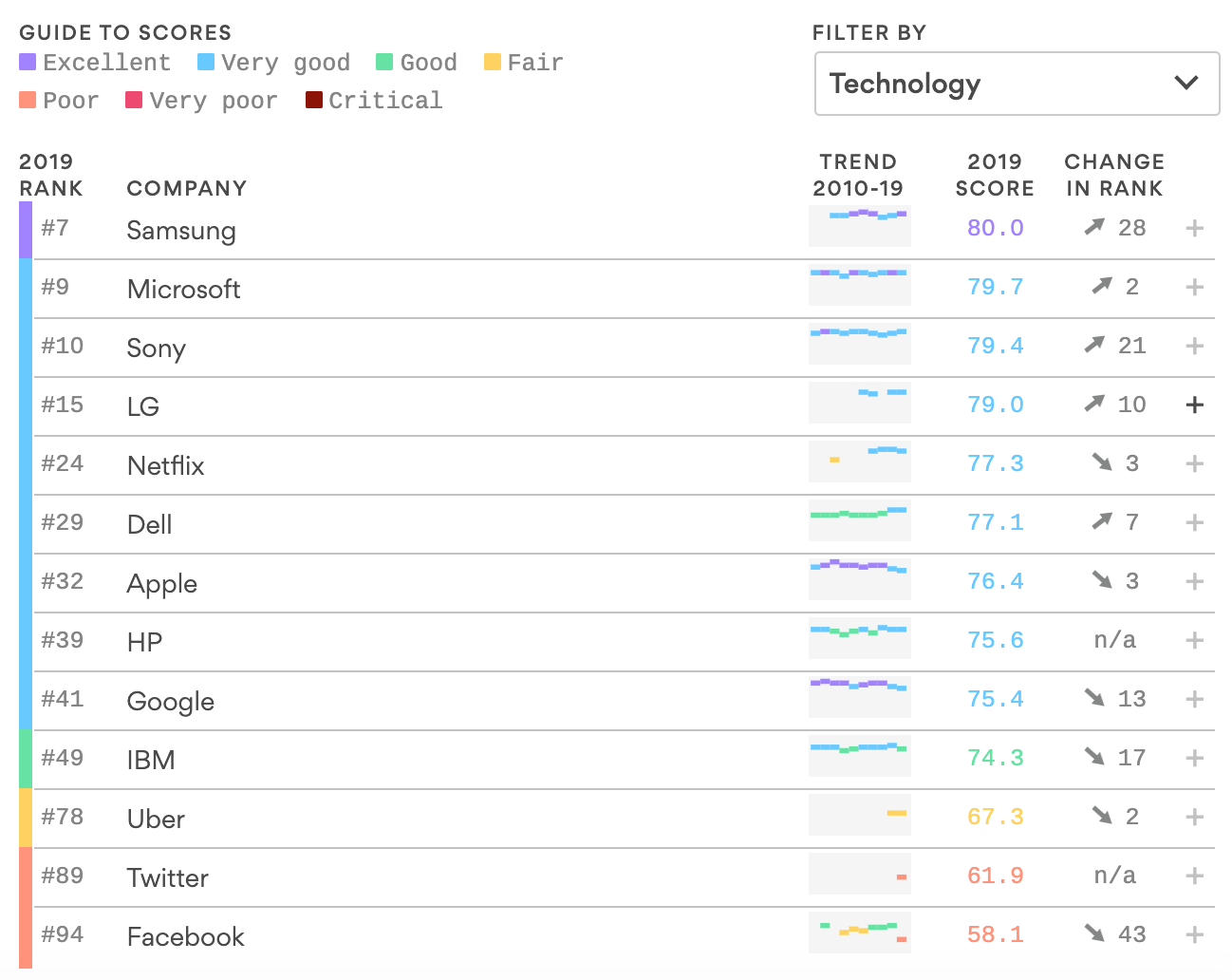 A joint poll by Axios and Harris Poll ranked the most beloved, and the most hated, companies among the nation’s most recognizable brands. Apple’s marketing seems to be working and has staved off the techlash for now, but the same can’t be said of Facebook. Among the top 100 brands, Facebook is 94th overall, rubbing shoulders with the likes of Goldman Sachs, Trump Org. and the U.S. Government. Among just tech companies, Zuckerberg ranks dead last.