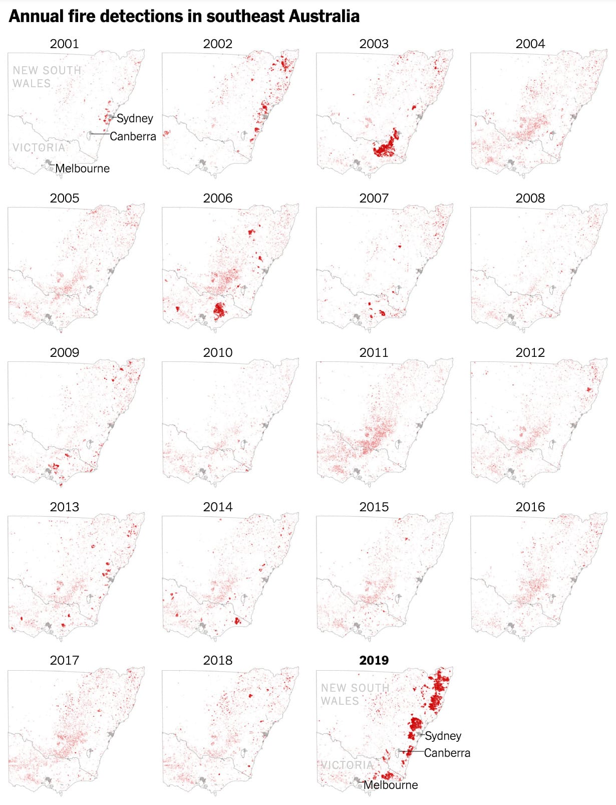 Unless you’ve seen a wildfire up close, it’s hard to imagine their severity. Thank the lord for the immense talent of the visual teams at The Guardian and the New York Times for contextualizing how bad the wildfires are.