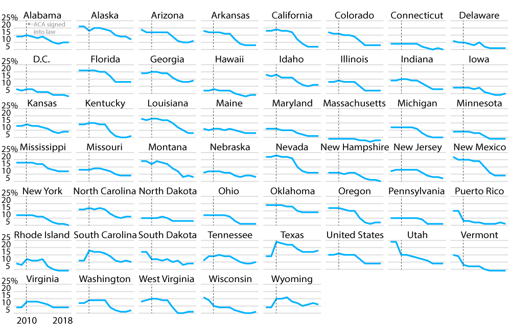Uninsured Rate Per State, 2010-2018