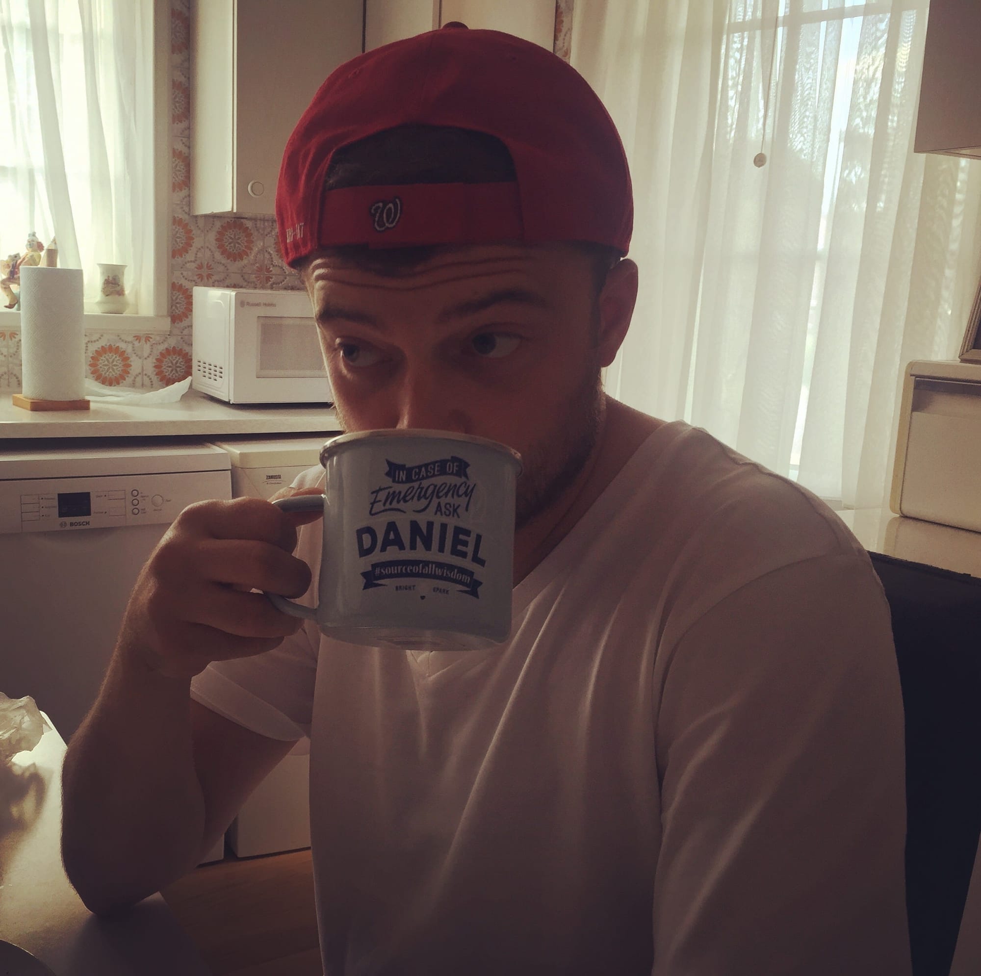 The original artwork for The Daniel Levitt Podcast taken in my grandma’s kitchen. Again, why did nobody immediately shut that down? 👇