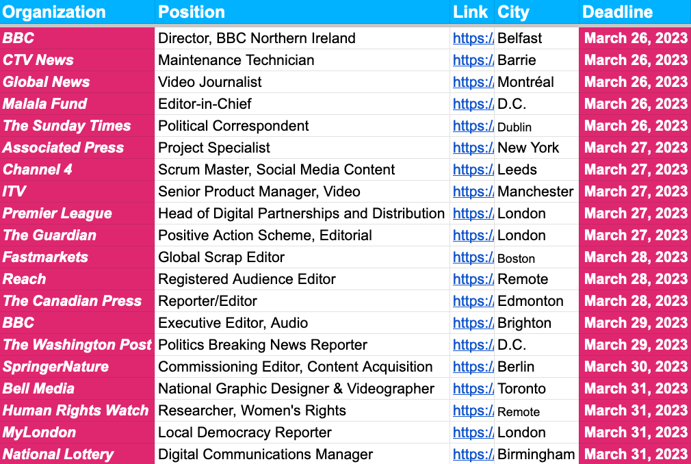 If you want access to 2,000+ job postings at mainstream and non-mainstream media organizations, click on any of the buttons below. Each option comes with a free seven-day trial. 👍