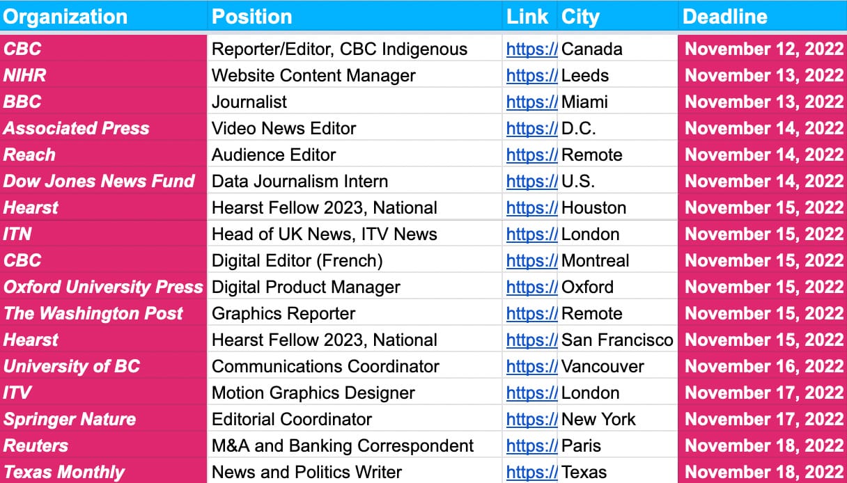 Until then, check out Monday’s jobs and news update where we added our usual ~800 new openings across the U.S., UK, Canada and Europe. And we also delved into the 2022 Global Impunity Index, and the U.S. Department of Homeland Security’s secret efforts to police speech and misinformation.