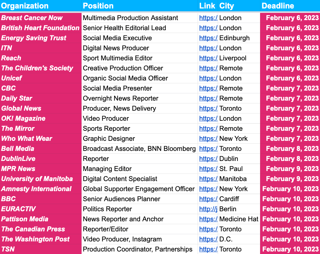 And finally, to access the job board with more than 2,000 journalism jobs across the U.S., UK, Canada and Europe, hit any of the below links. Each option includes seven days free so you can try-before-you-buy and cancel anytime.