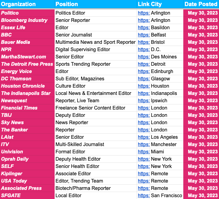 The below listings are just a sample of the many categories of journalism jobs we list. Others include Audience, Audio, Broadcast, Data/Viz, Design, Photo, Product, Social Media, Strategy and Video. Subscribe below for full access…