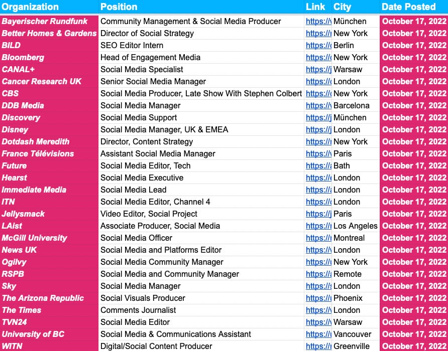 That’s all for today. Check out our featured and new jobs below, with the focus on social media and strategy roles. I’ll be back in your inboxes on Friday, speak soon!