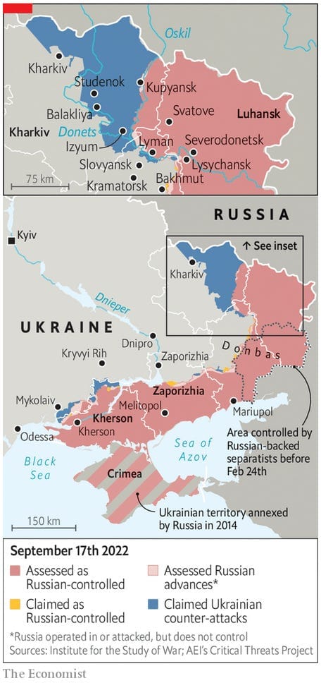 What happens next? Well, Ukraine’s surge in confidence after its recent gains, combined with Putin’s renewed stated objective of complete control of Donetsk and Luhansk (and the political tension and backlash at home if he fails), suggest the end to this chapter of conflict is nowhere in sight.
