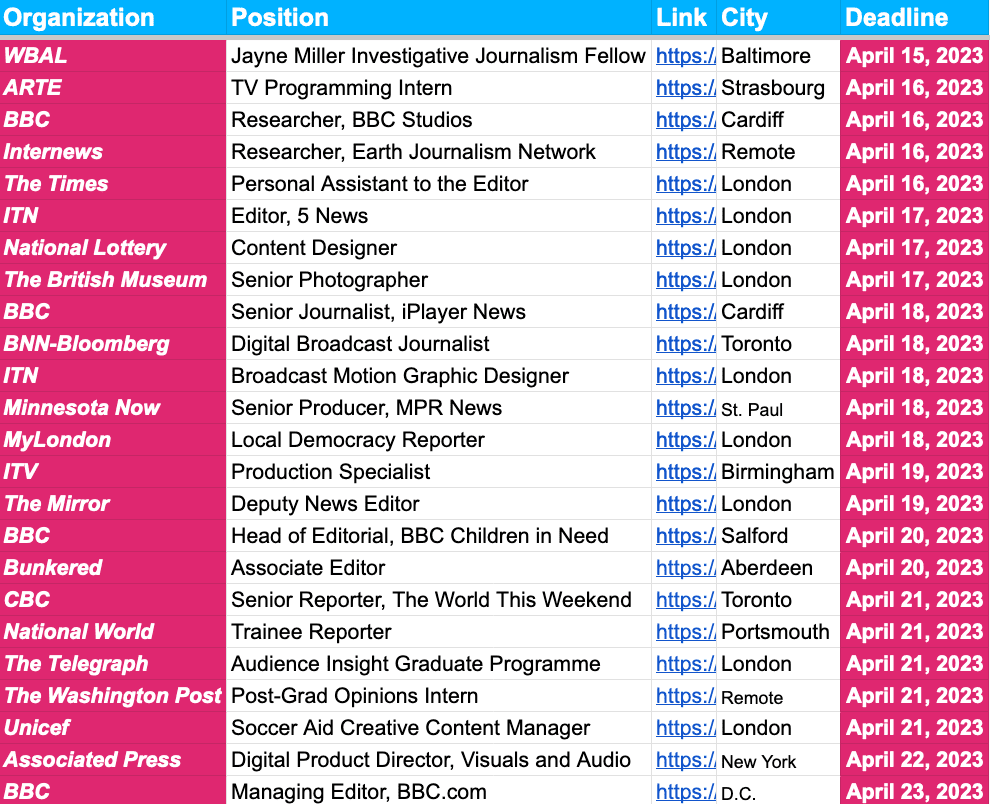 ✍️✍️ Journalism Awards, Events and Fellowship Deadlines ✍️✍️ — April 14