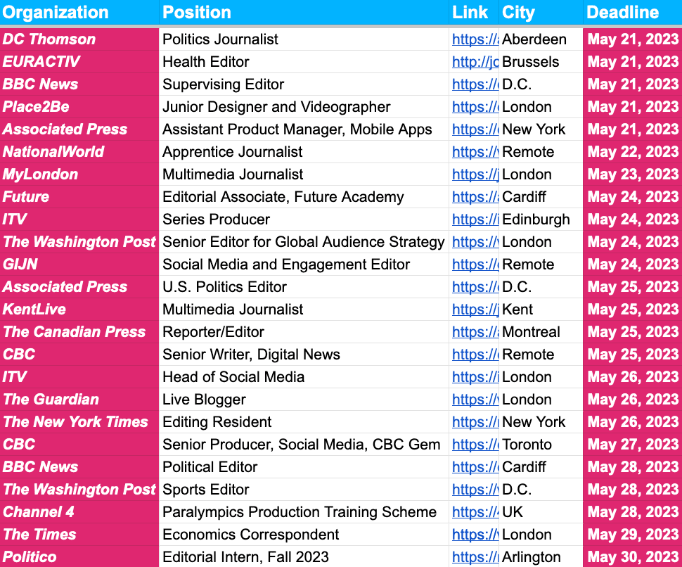 ✍️ Journalism Awards, Events and Fellowships Deadlines ✍️ — May 19