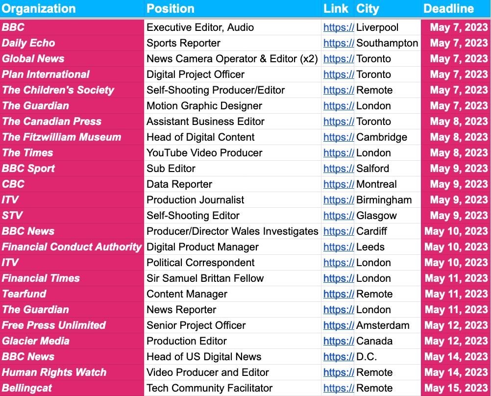 Job hunters: If you want unlimited access to our full journalism jobs board, with roughly 1,500 active openings in the U.S., UK, Canada and Europe, subscribe below.