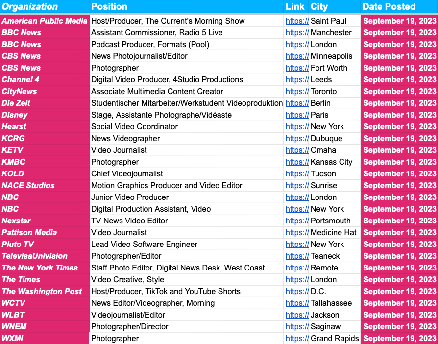 ✍️ Journalism Jobs and Media News Update ✍️ — September 19