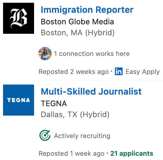 While scouring LinkedIn this week I noticed that it had introduced a “Reposted” designation to signal when companies regurgitate the same roles over and over. I mention this for two reasons: 1) too many of the jobs posted on LinkedIn are older than one month, and 2) you can be assured that you won’t find anywhere near the same levels of regurgitation on Inside The Newsroom’s job board.