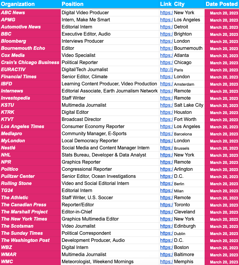 If you want access to 2,000+ job postings at mainstream and non-mainstream media organizations, click on any of the buttons below. Each option comes with a free seven-day trial. 👍